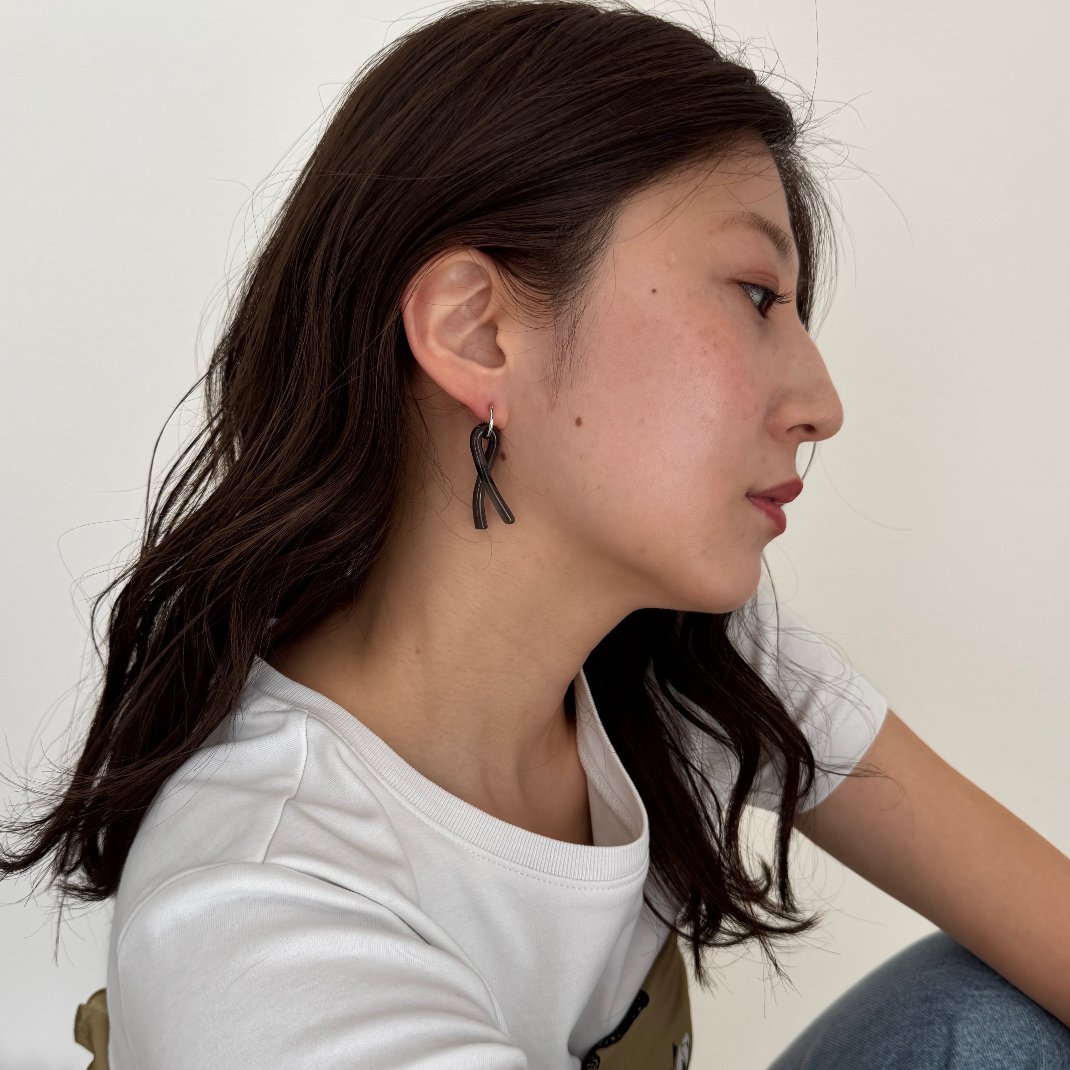 【2way】ガラス クロス ピアス グレー(濃)(ゴールド or シルバー)※イヤリング変更可能