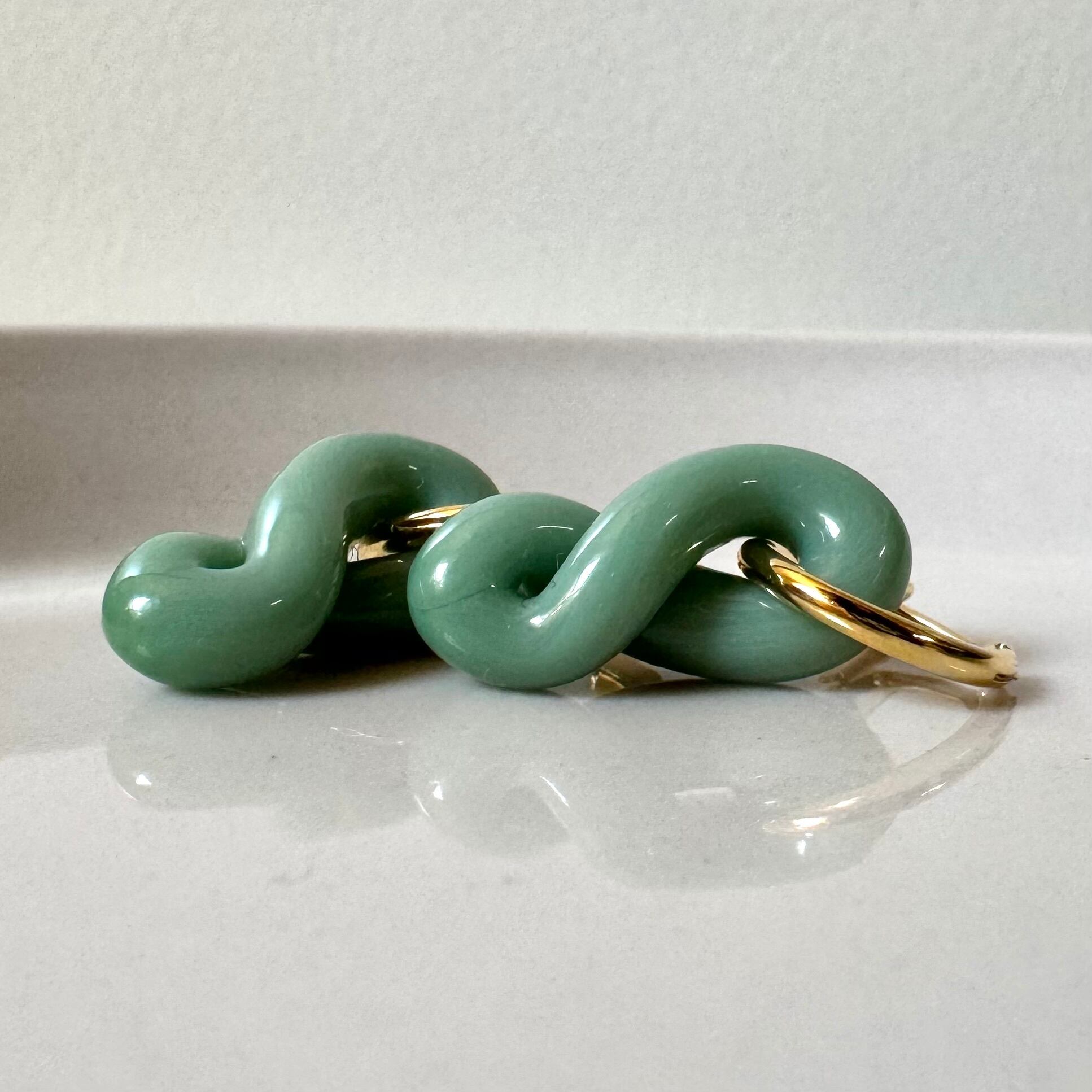 【2way】ツイスト ガラス ピアス スモーキーグリーン(ゴールド or シルバー)※イヤリング変更可能