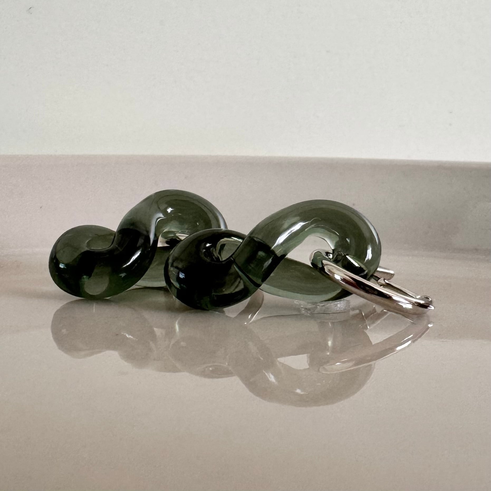 ツイスト加工した手作りガラスとフープピアスのセットです。