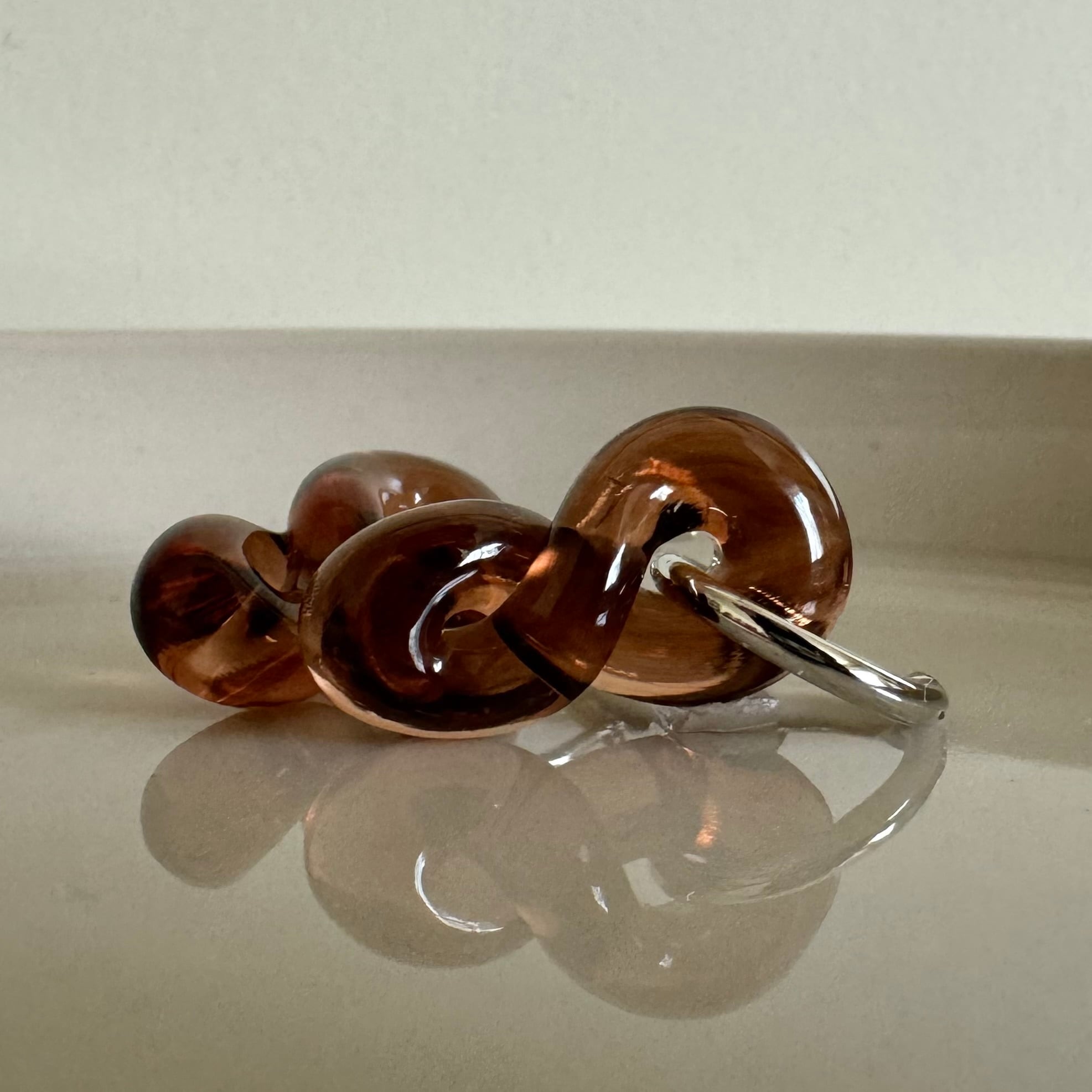 【2way】ツイスト ガラス ピアス ブラウン(ゴールド or シルバー)※イヤリング変更可能