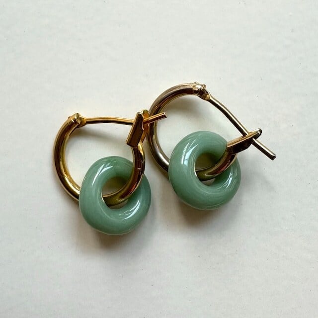【2way】ダブル ガラス フープ ピアス スモーキーグリーン(ゴールド or シルバー)※イヤリング変更可能