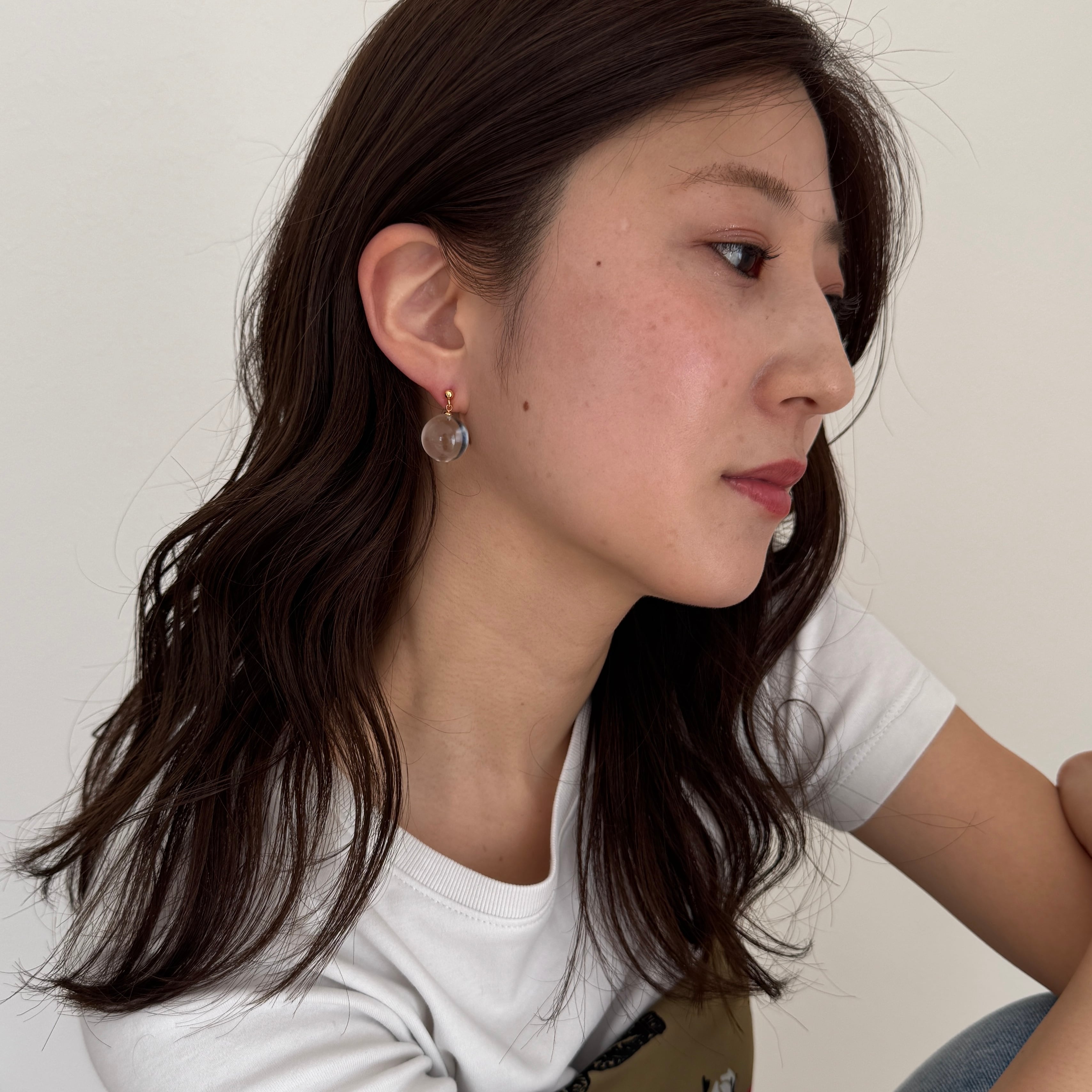 ラウンド ガラスピアス クリア medium(ゴールド or シルバー)※イヤリング変更可能