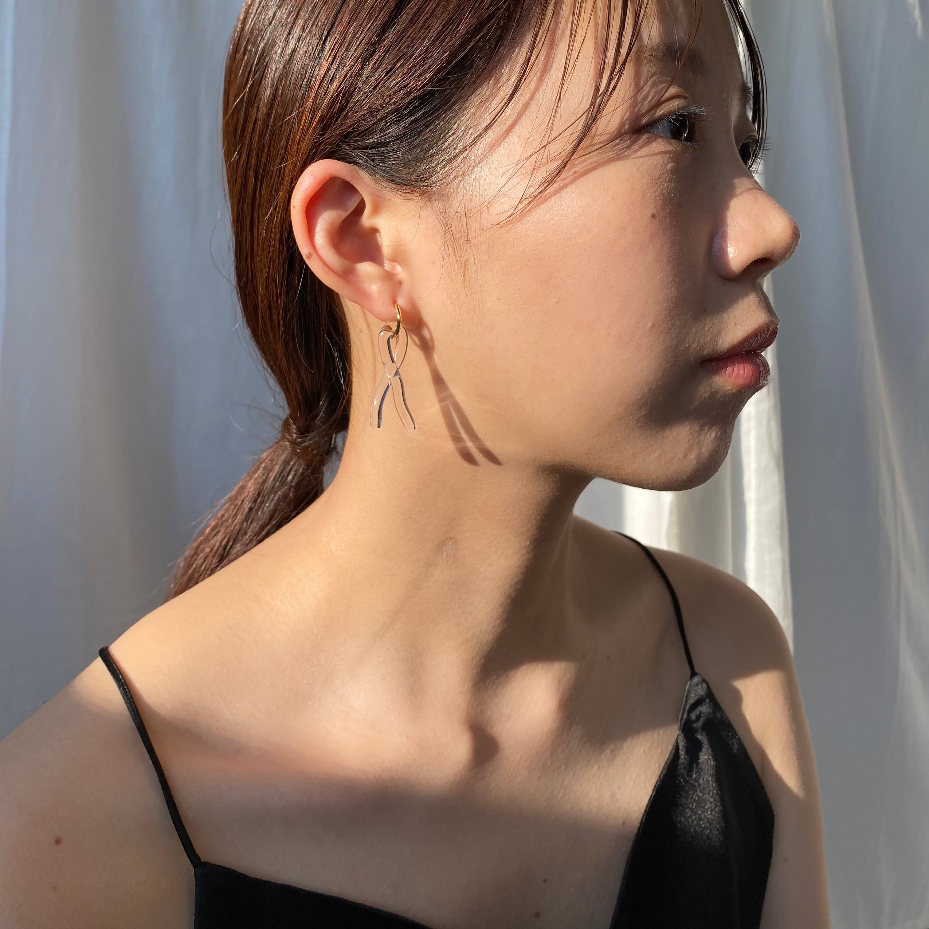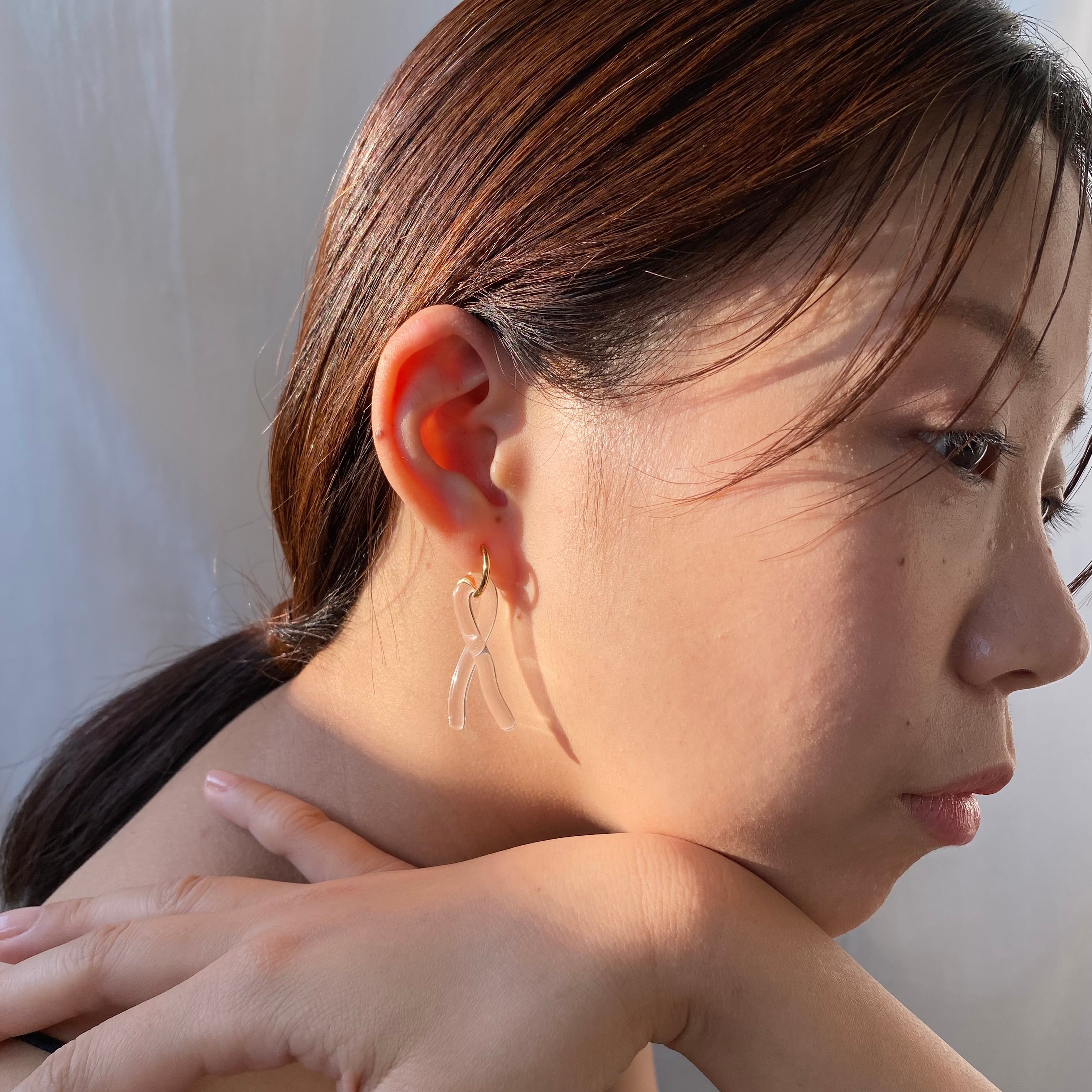 ガラスをフープピアスに合わせました。