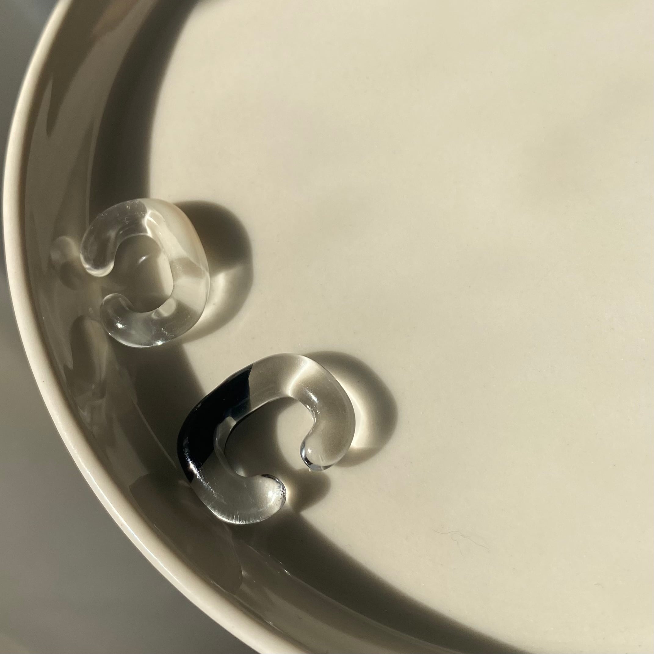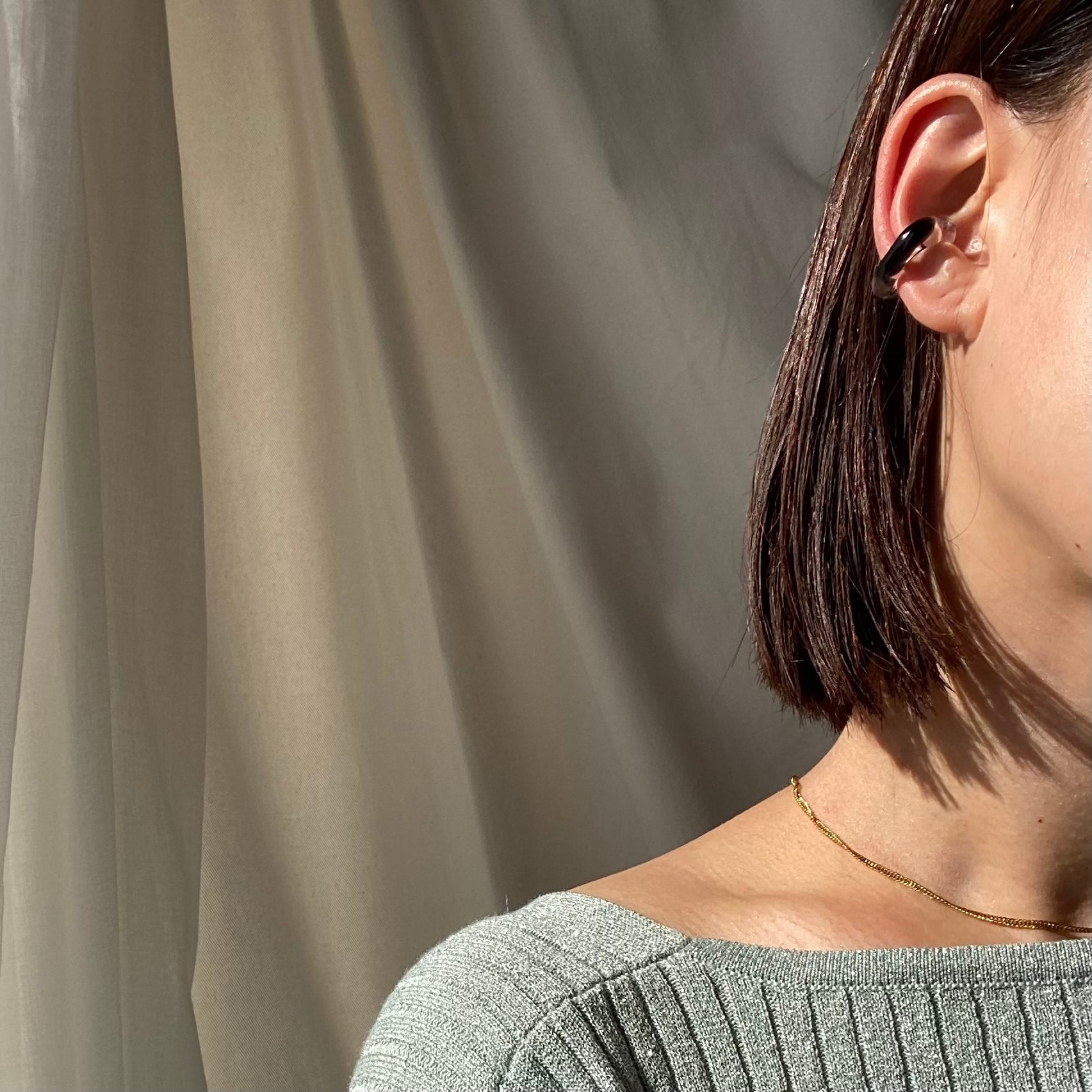 ワンポイント ガラス イヤーカフ(アイボリー or ブラック)