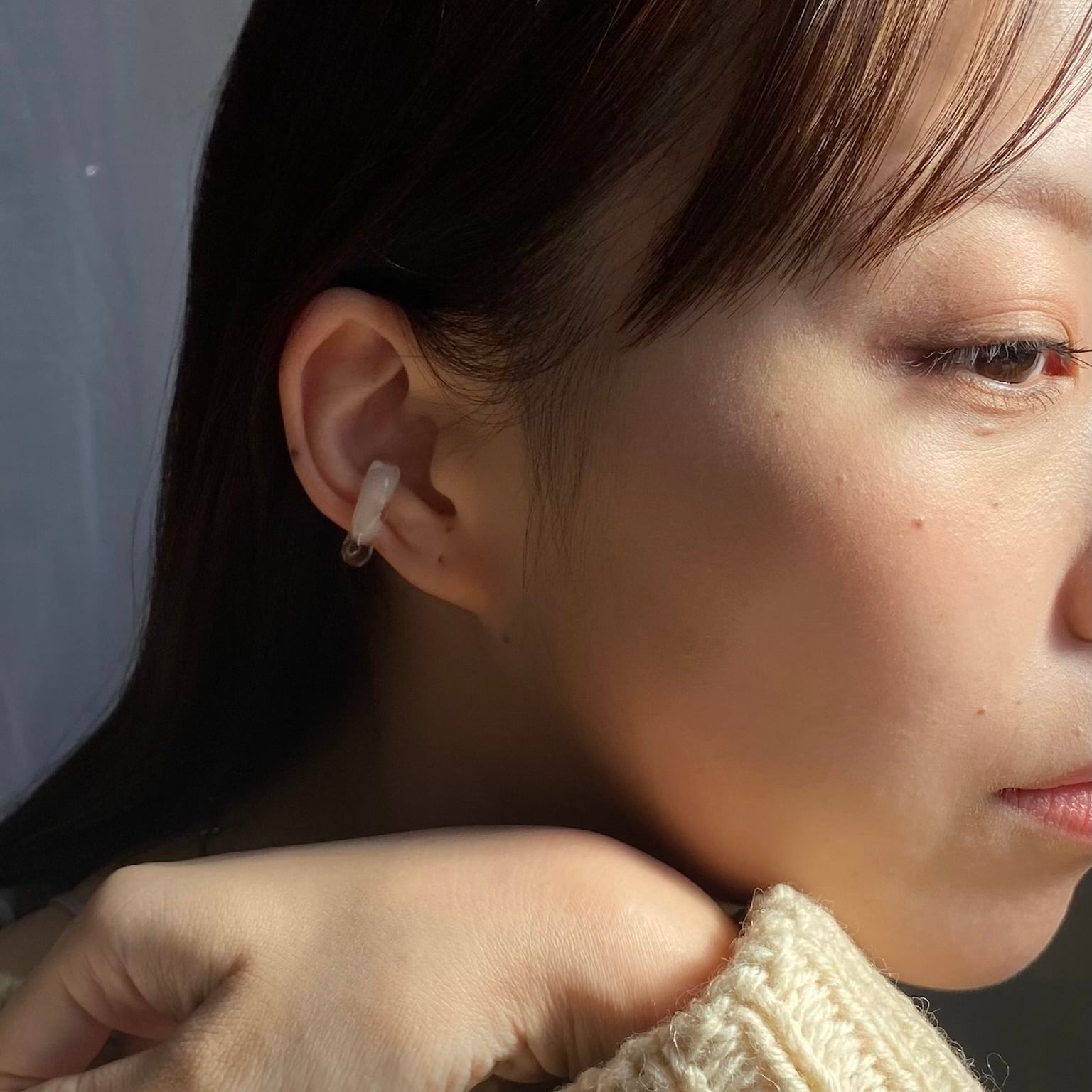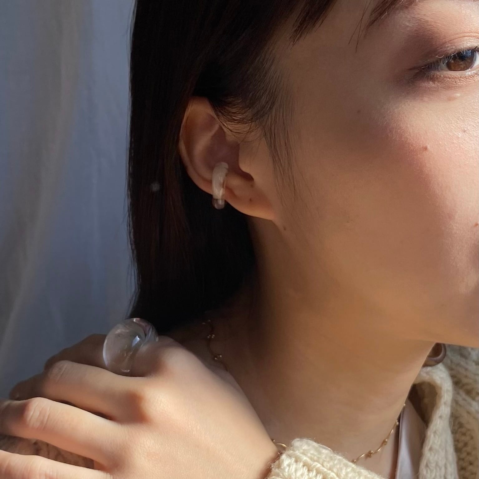 手作りガラスのイヤーカフ。