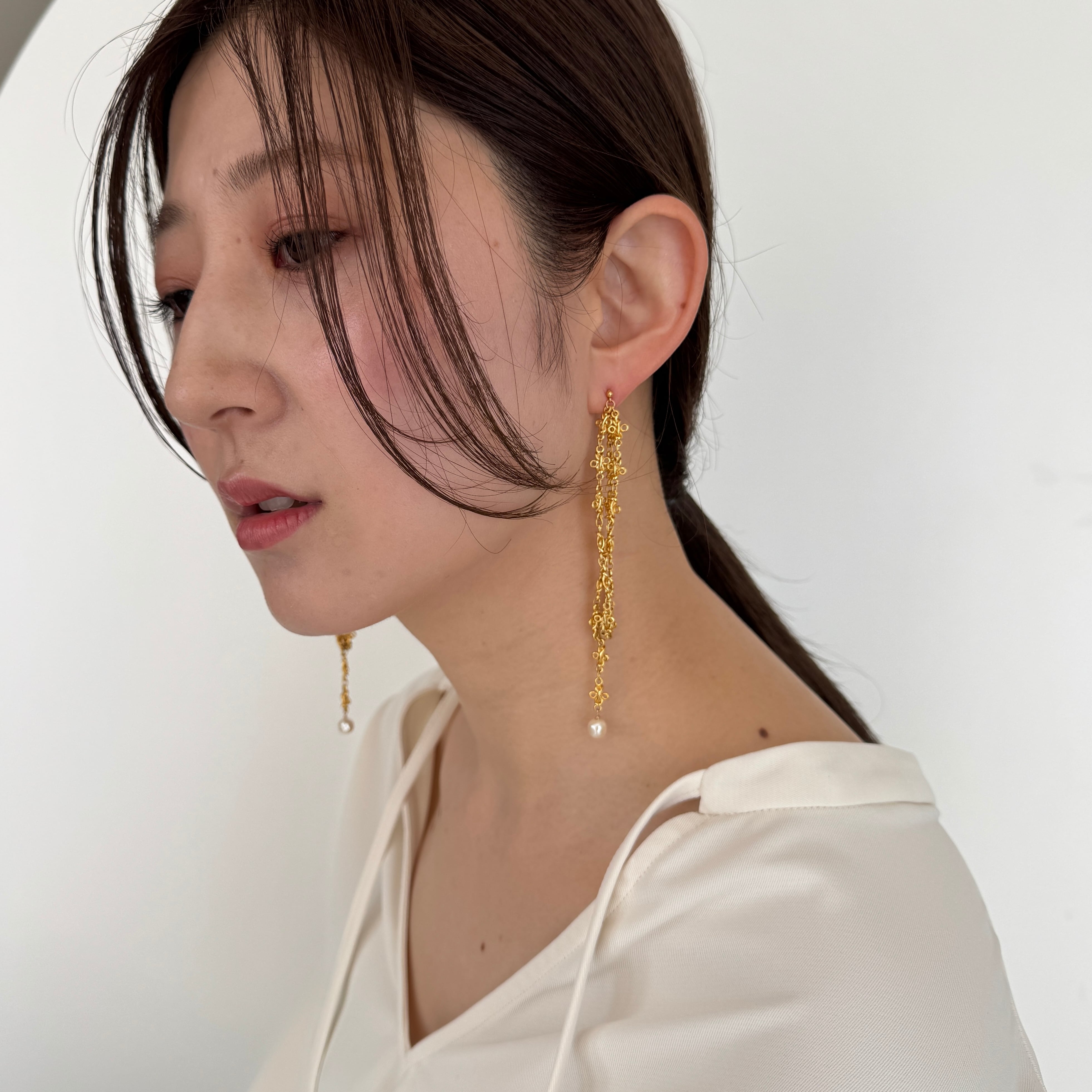 24Kコーティングのデザインチェーンを使用したピアス/イヤリングです。